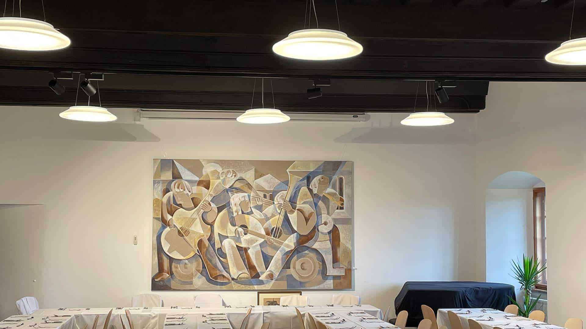 In ausgewählten Bereichen wurde moderne Medientechnik eingebaut – etwa für Präsentationen und Veranstaltungen. Die Technik wurde so geplant und installiert, dass sie mit der historischen Atmosphäre harmoniert.