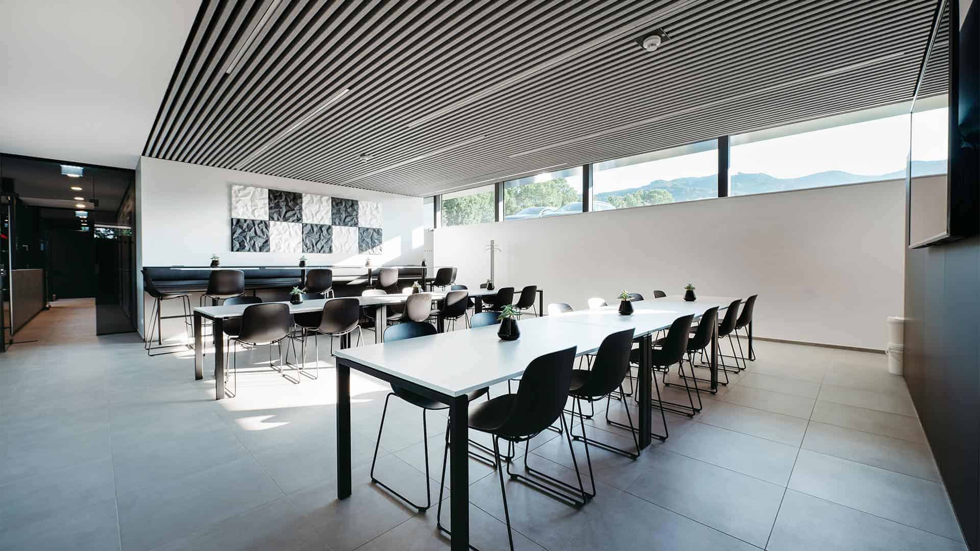Beim Umbau des Greiner Packaging International Headquarters modernisierten wir Beleuchtung, Notlicht, Brandmeldesysteme und KNX-gesteuerte Technik.