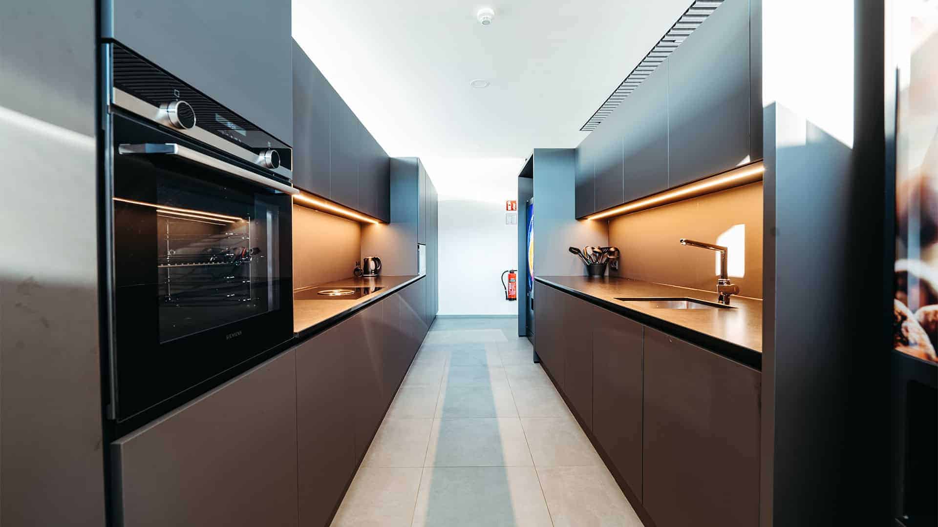 Elektroinstallation im Neubau des TGW-Headquarters vereint intelligentes Showroom-Licht, Medientechnik, KNX und sichere Wege für Kunden.