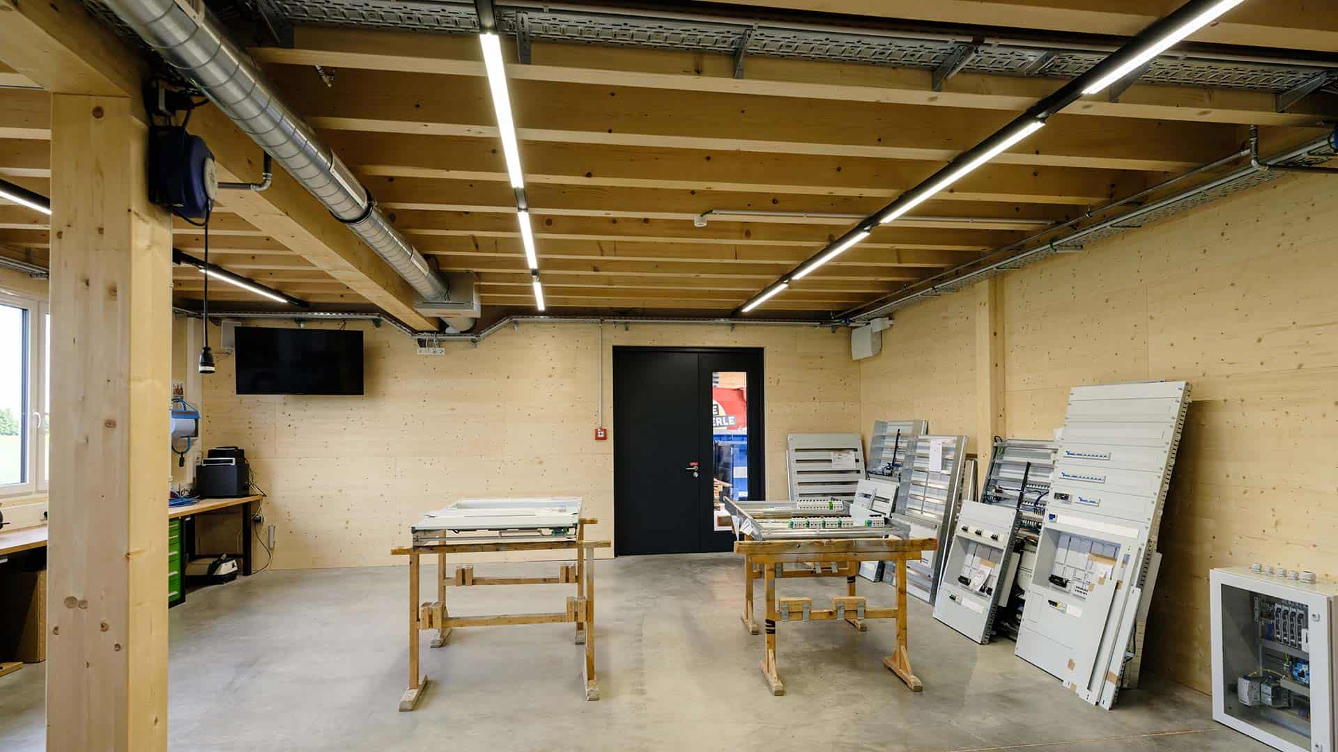 Der frei gewordene Platz in Großendorf wurde in den darauffolgenden Jahren in einen Schauraum für Elektroinstallationen umgebaut. Hier können Bauherren von Einfamilienhäusern bis Firmengebäuden Technik angreifen und ausprobieren. Das breite Produktsortiment von Schaltermaterial über Sprechanlagen, Alarmanlagen, Touch-Bedienelementen, Beleuchtung und vieles mehr kann in Ruhe getestet und ausgesucht werden.